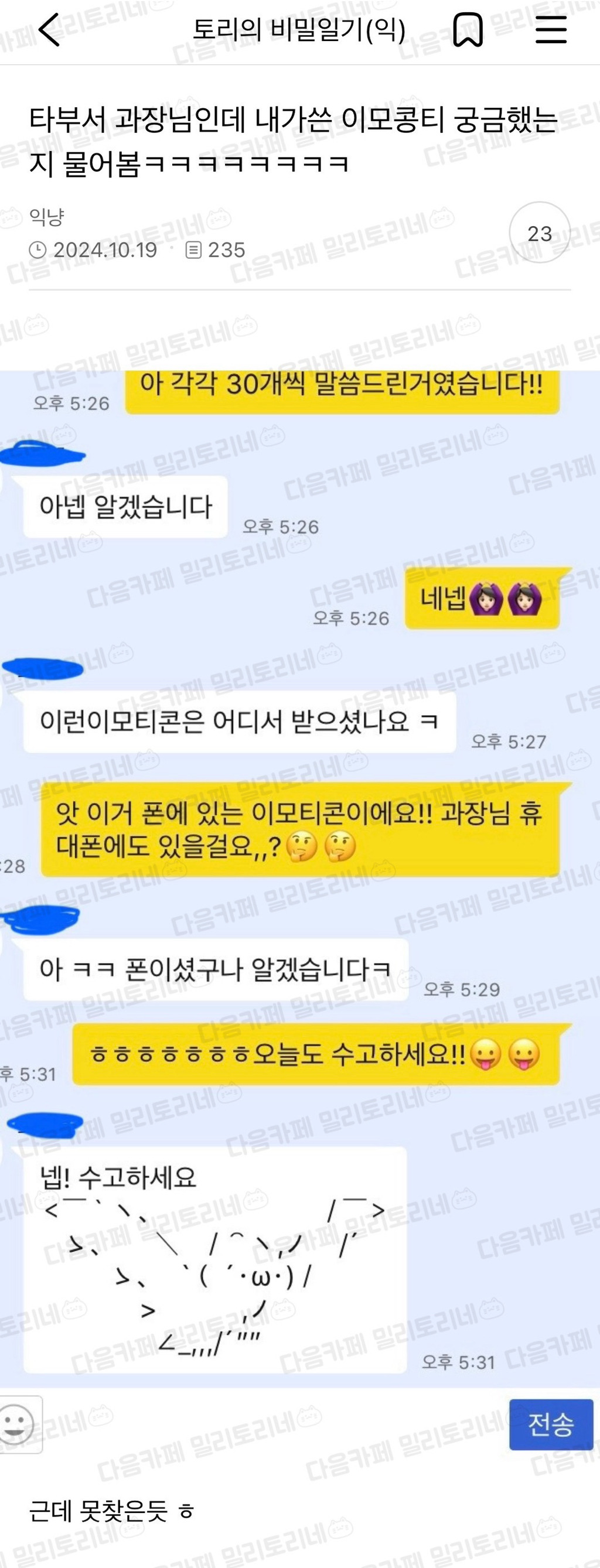 타부서 과장님인데 내가 쓴 이모티콘 궁금했는지 물어봄