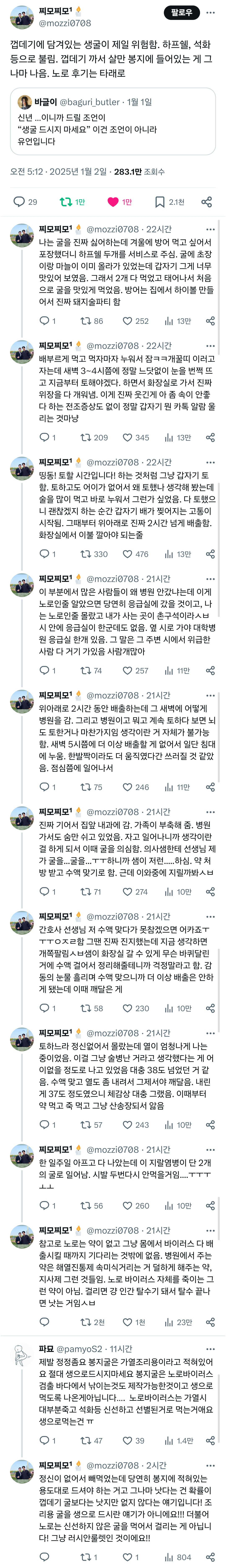 껍데기에 있는 생굴은 노로 바이러스 지름길