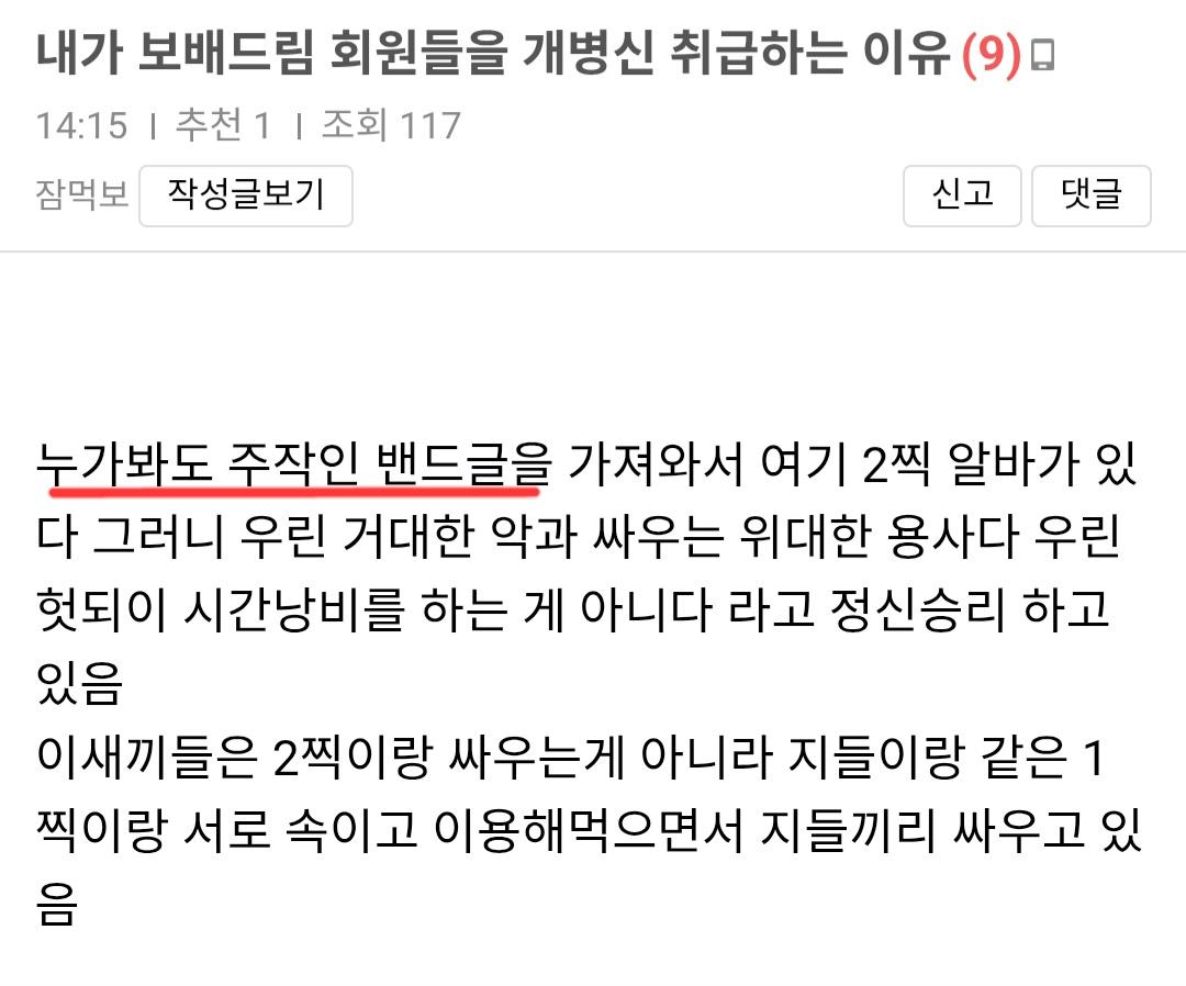 오늘도 자기자신과 싸우다 장렬히 화장실로 간 희수... 랜달스티븐슨 0 113 0 0 12.24 16:15 주소복사 복사되었습니다! 응? 밴드글이 조작이라고? 그럼 희수 니가 올린 밴드는 뭐지? 앤 조작이 아닌가? 스스로 알바라고 인정까지 하는데...넌 1이니 2니? 우리가 흔히 말하는 빤스런이 이런건가보다... 0 0