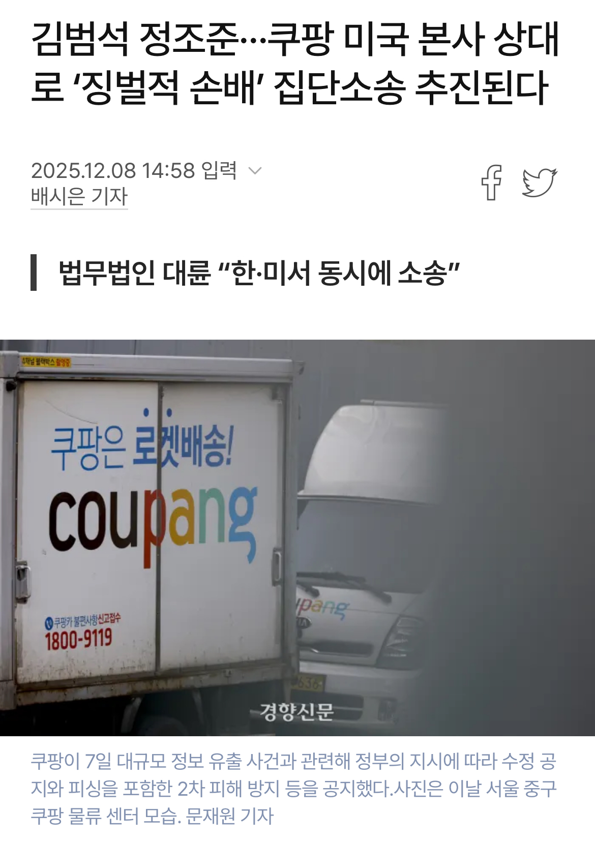 쿠팡집단소송추진 잭the리퍼 0 46 0 0 12.09 10:28 주소복사 복사되었습니다! https://www.khan.co.kr/article/202512081458001 0 0