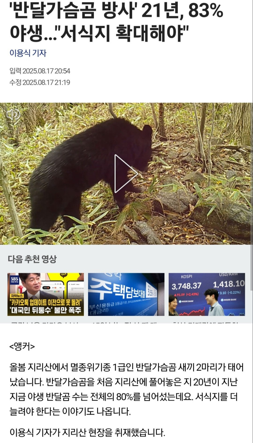분명 반달곰은 안전하다고 하지 않았었나? 이건 뭐지? 안생기다 0 18 0 0 14시간전 주소복사 복사되었습니다! 일본에선 반달곰에 의해 유명하신 분이 오늘 사망하셨네.. 그런데 우리나라는 반달곰 서식지를 확대해야 한다는 중이네.. 0 0