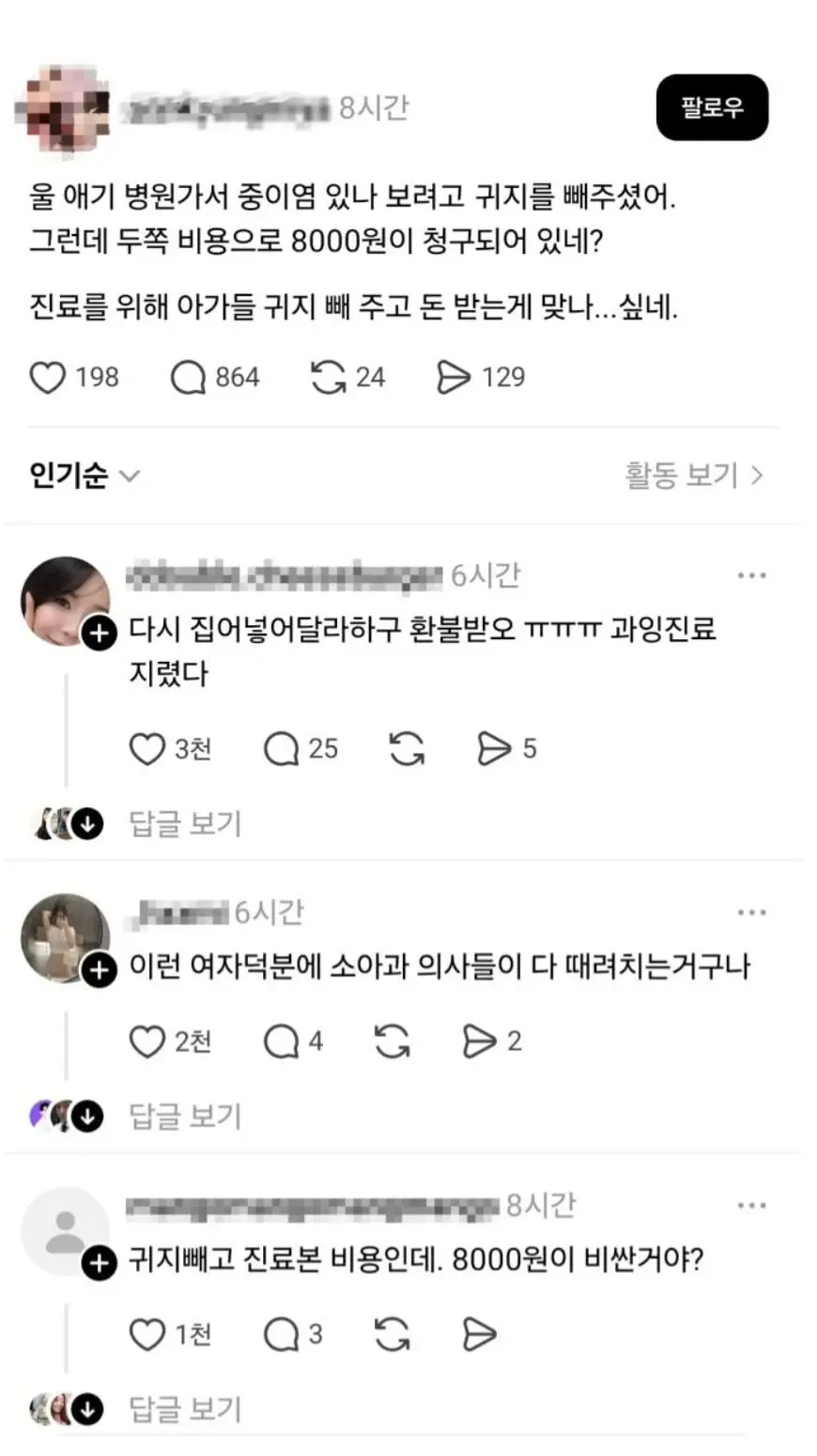 아이 귀지 빼주고 8천원 청구한 소아과 의사