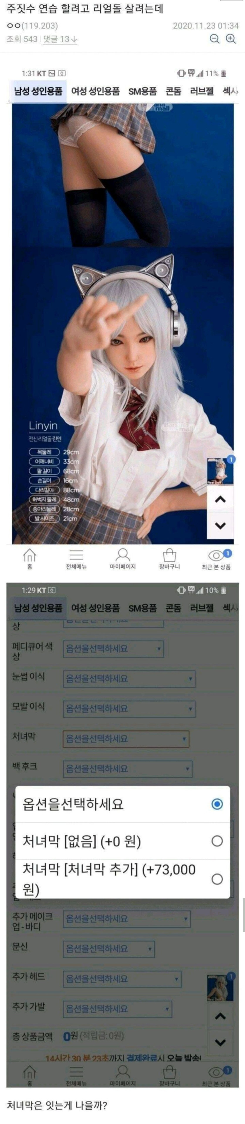주짓수 연습 할려고 리얼돌 살건데 조언좀.