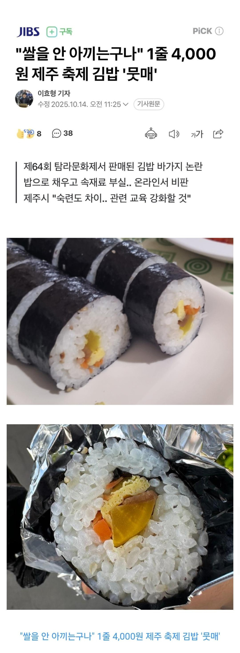 1줄 4,000원. 2줄부터 구매 가능한 제주 축제 김밥