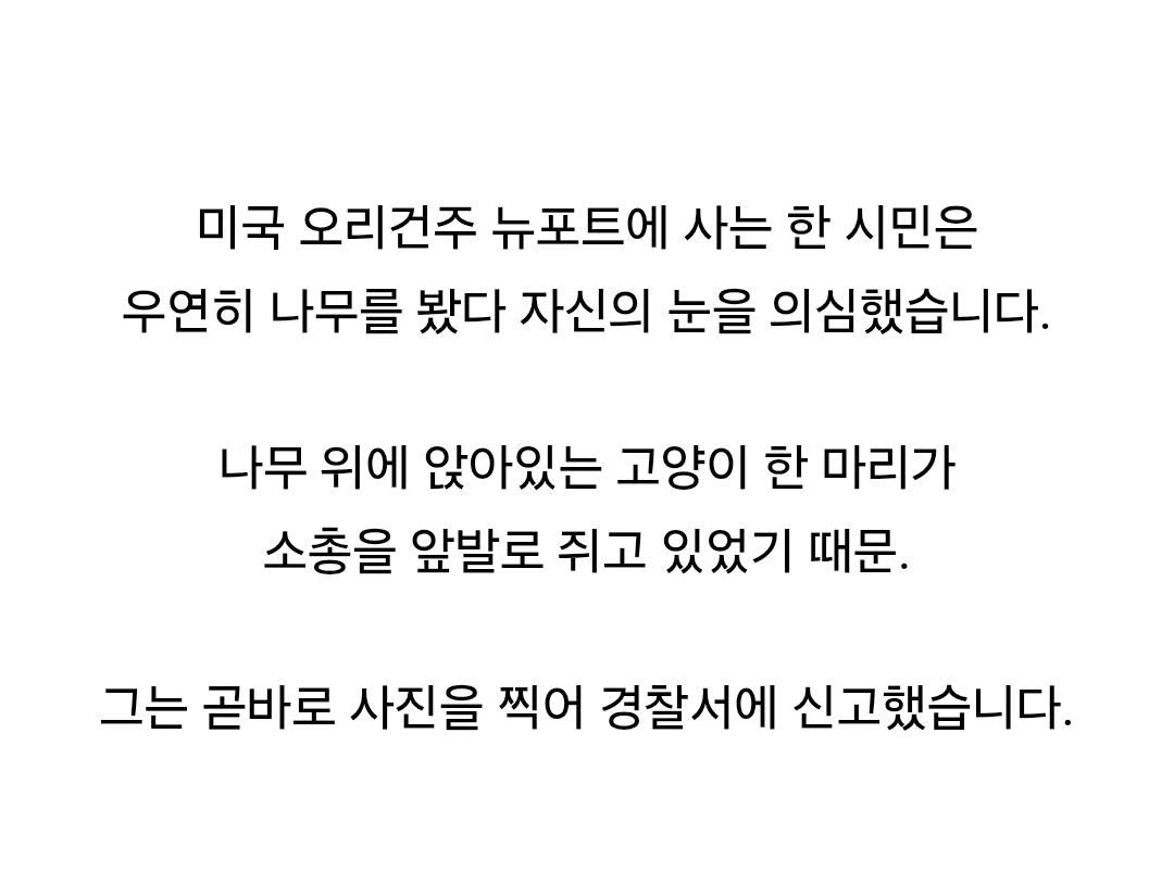 “나무 위에 소총 든 고양이가 있어요” 신고