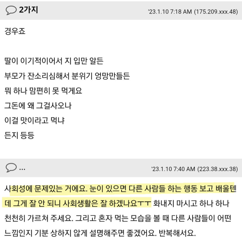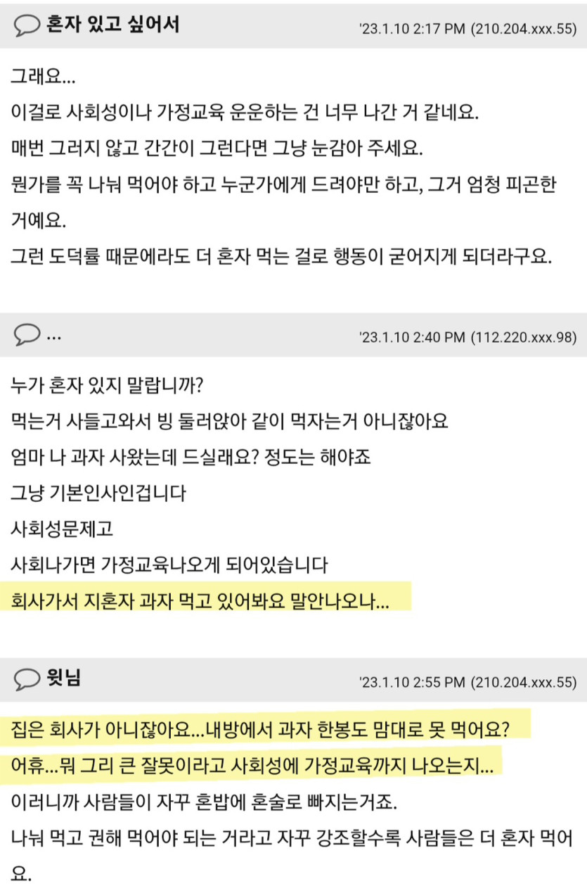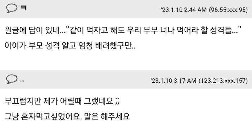 먹을꺼 사와서 혼자 먹는 딸 이상해요