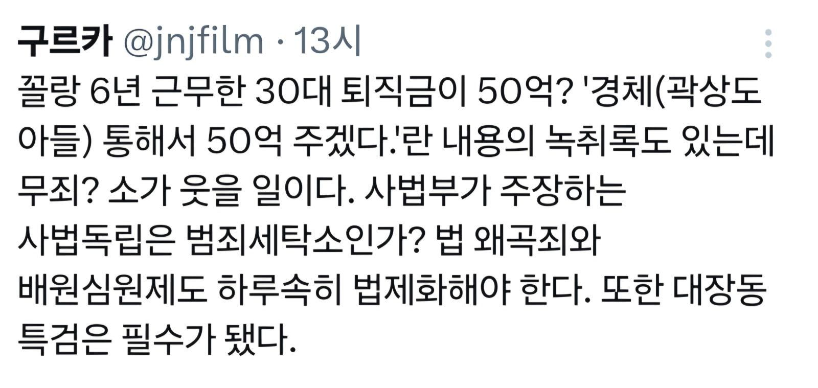 "6년 근무한 30대 퇴직금이 50억 무죄..소가 웃을 일이다"