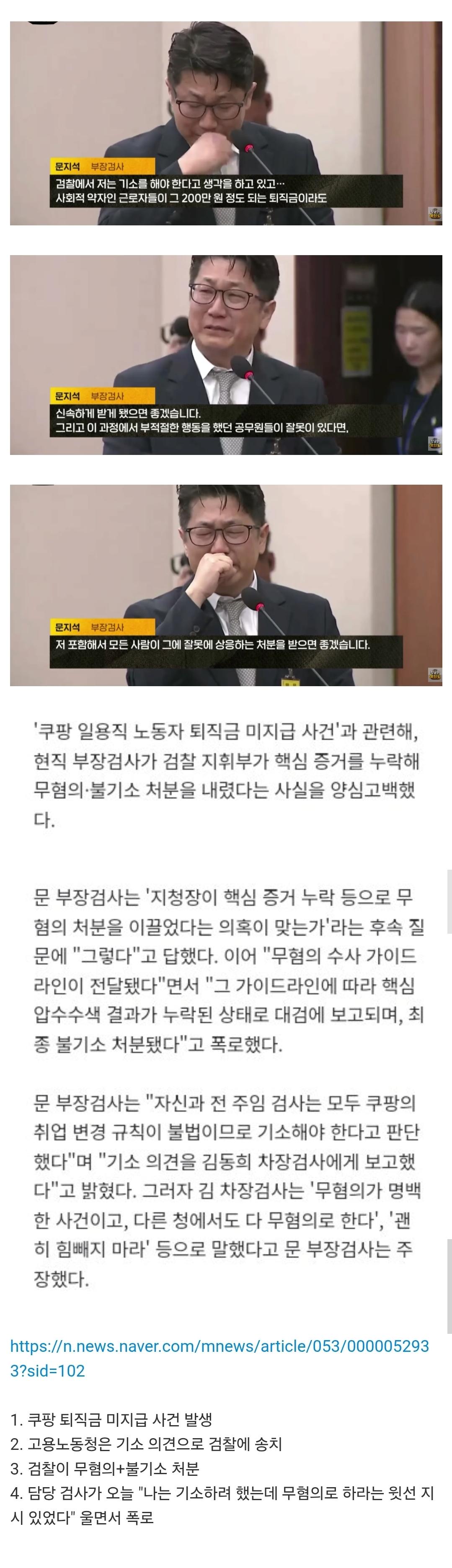 "쿠팡 무혐의 처리하라는 지시 내려와"