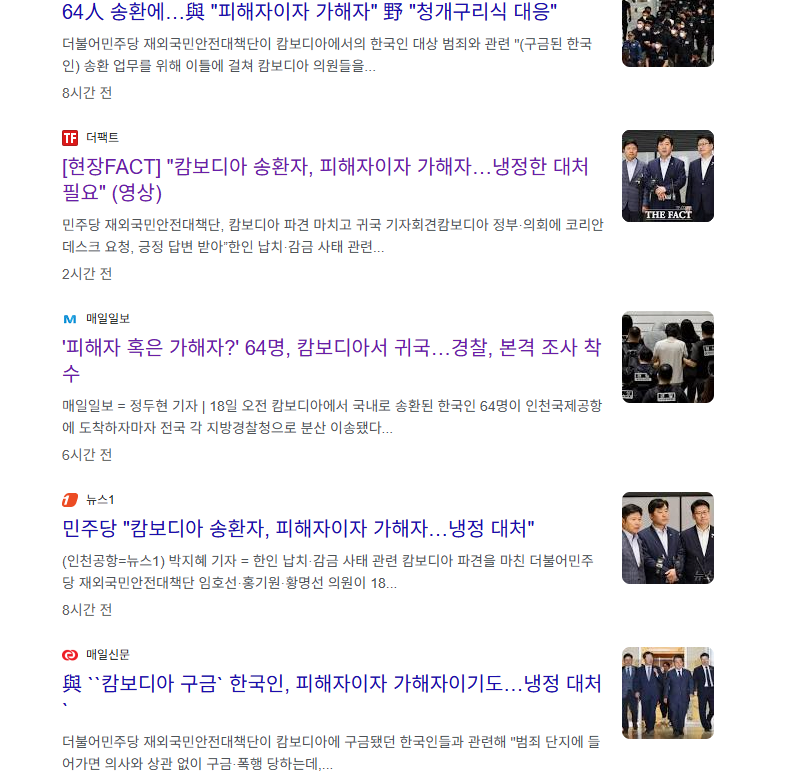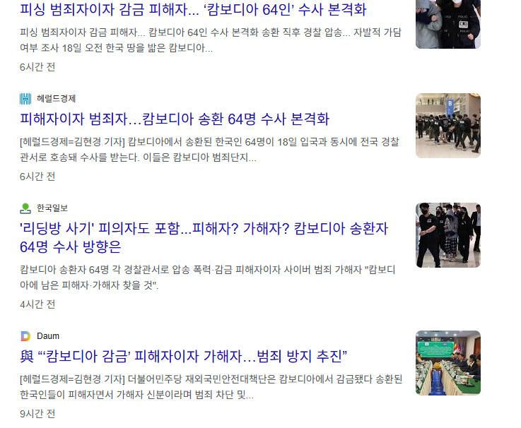 '감금 피해자이자 피싱 범죄자'…캄보디아 송환자들 수사 본격화 세븐킹덤 0 2 0 0 10.18 23:00 주소복사 복사되었습니다! 일단.. 지금 이런 기사들이 많이 올라오고있다.. 분명히 알아둬야할건 전자금융거래법 제 6조 2의 근거하여 그들모두.. 법적으로는.. 범죄자가 맞다는걸잊지말자.. 어렵다고.. 사회 초년생이라고.. 가정형편이 어쩌고.. 그들이 피해를 당한건 안타깝지만 불법 통장 대여 + 보이스피싱 업무 = 이중 범죄지.. 무슨 피해자야 이걸 어떻게 구분해서 판결 내리냐는.. 문제가 있지만.. 무조건 100프로 피해자는 아닌것은 맞음 0 0