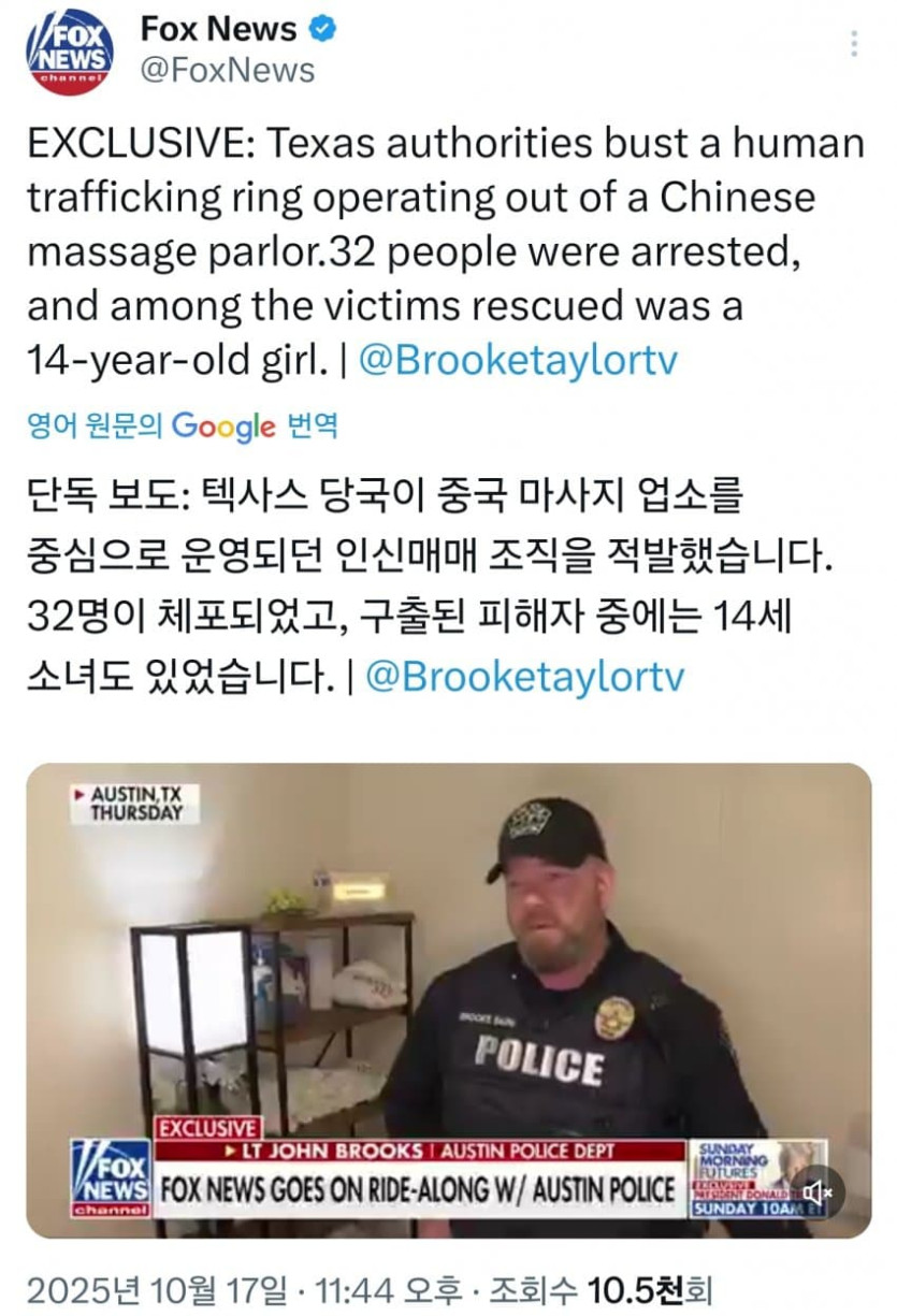 미국, 중국 마사지업소 위장 인신매매 조직 적발