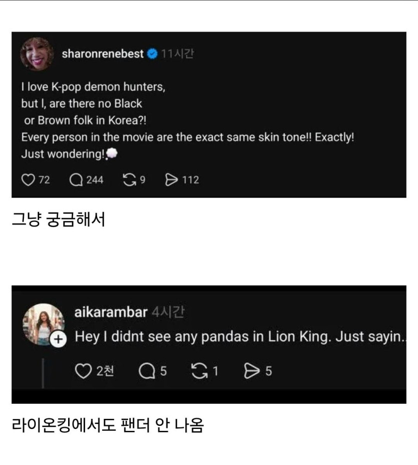 ??? : 케데헌을 좋아하긴한데 왜 흑인이 나오지 않는거지?
