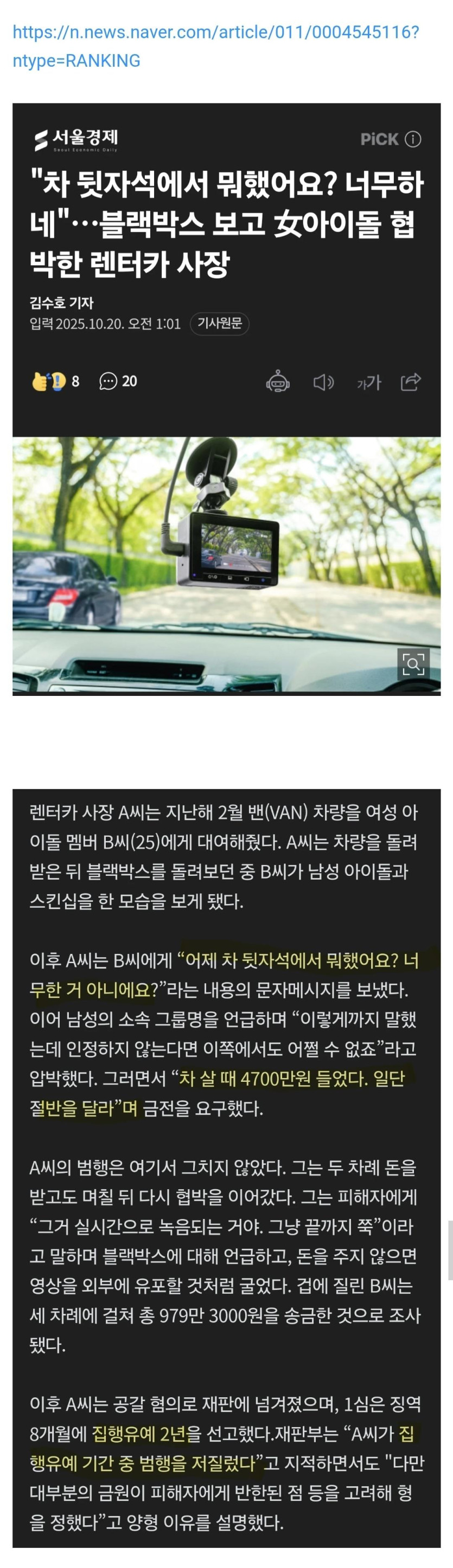 여아이돌 스킨십 발견... 협박 전과자 집유
