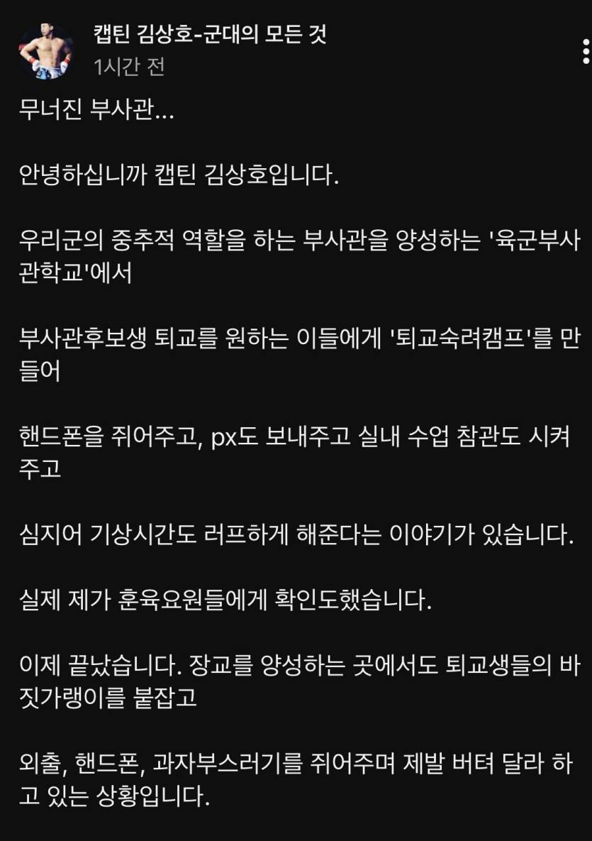 “부사관 후보생 퇴교 막으려고 핸드폰·PX까지..”