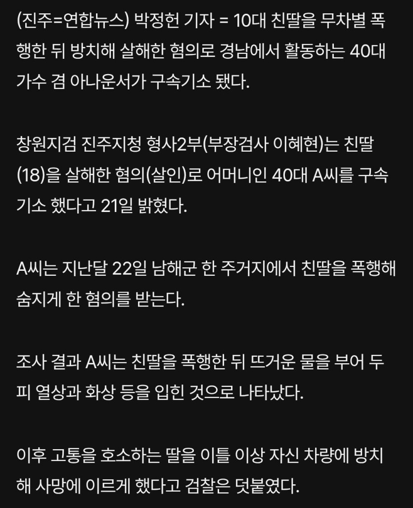 40대 가수 겸 아나운서가 10대인 친딸을 폭행