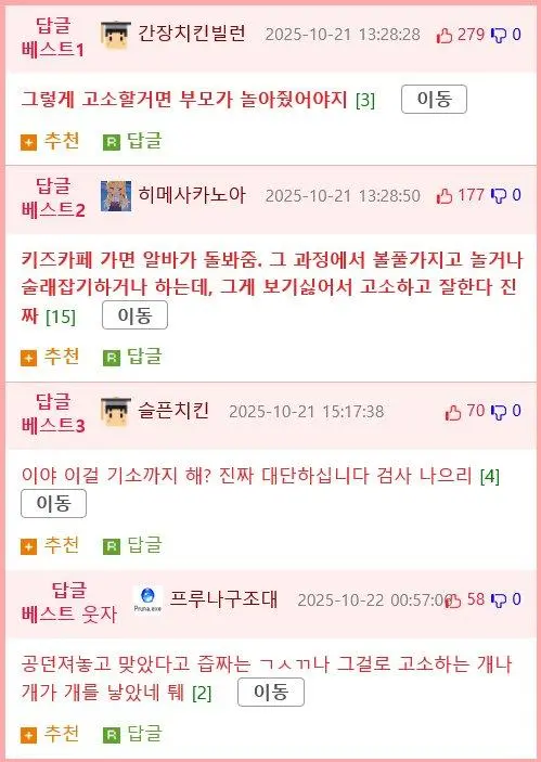키즈카페에서모르는아이와놀아주면안되는이유 알카이트 0 7 0 0 10.22 23:00 주소복사 복사되었습니다! 키즈카페 가면 다른 애가 다가와서 놀아달라고 할 때가 가끔 있는데 내 남편은 리액션도 잘 하고 잘 놀아줬단 말야; 이런 일 알고 나니까 좀 무서워졌어ㄷㄷㄷㄷ 0 0