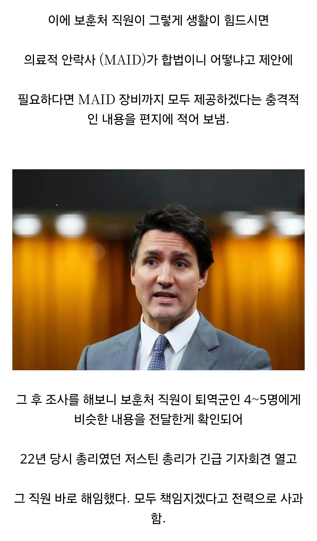 퇴역 군인한테 안락사를 권유한 캐나다 보훈처