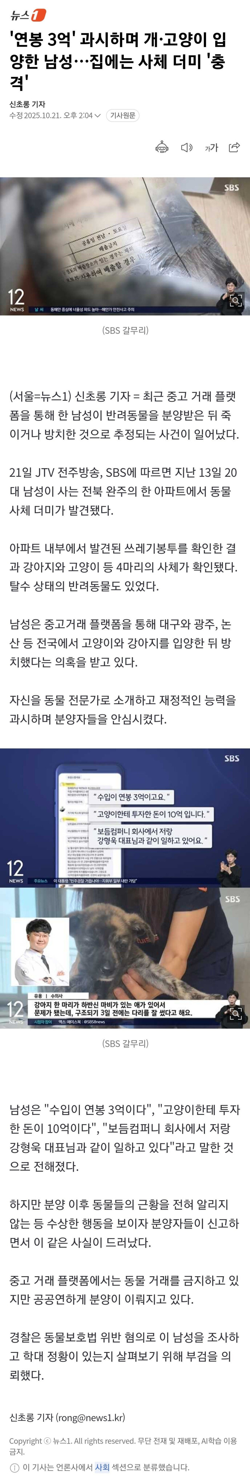 '연봉 3억' 과시하며 개·고양이 입양한 남성…집에는 사체 더미 '충격'