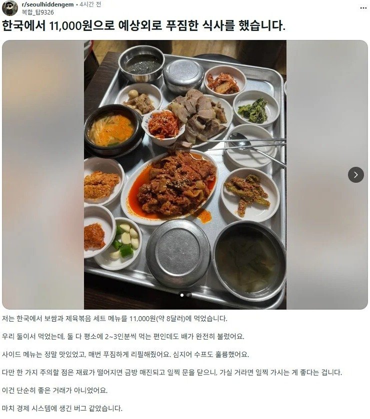 서울 11000원으로 나온 밥상에 감탄하는 외국인