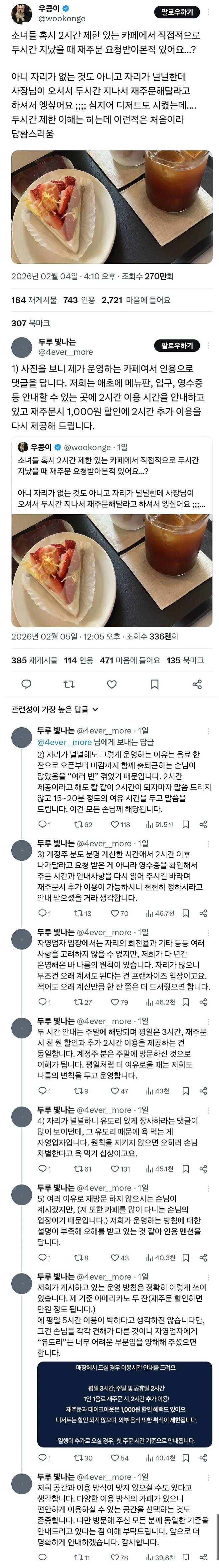 카페에서 2시간 지났다고 재주문 요청 받은 사람