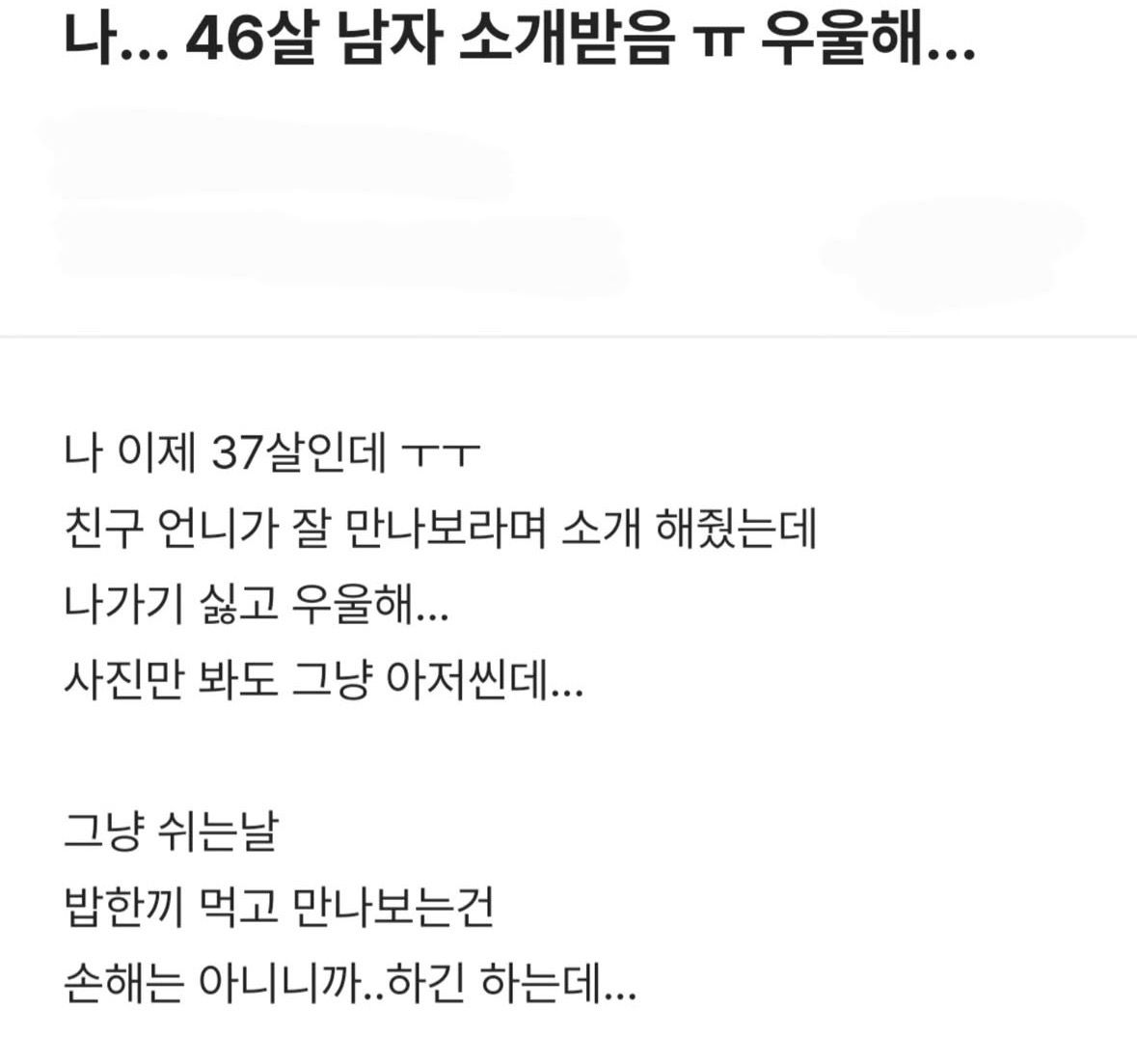 소개팅 들어왔는데 우울한 ㅊㅈ