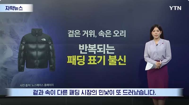 패딩 겉과 속의 반전...소비자 배신에 울화통