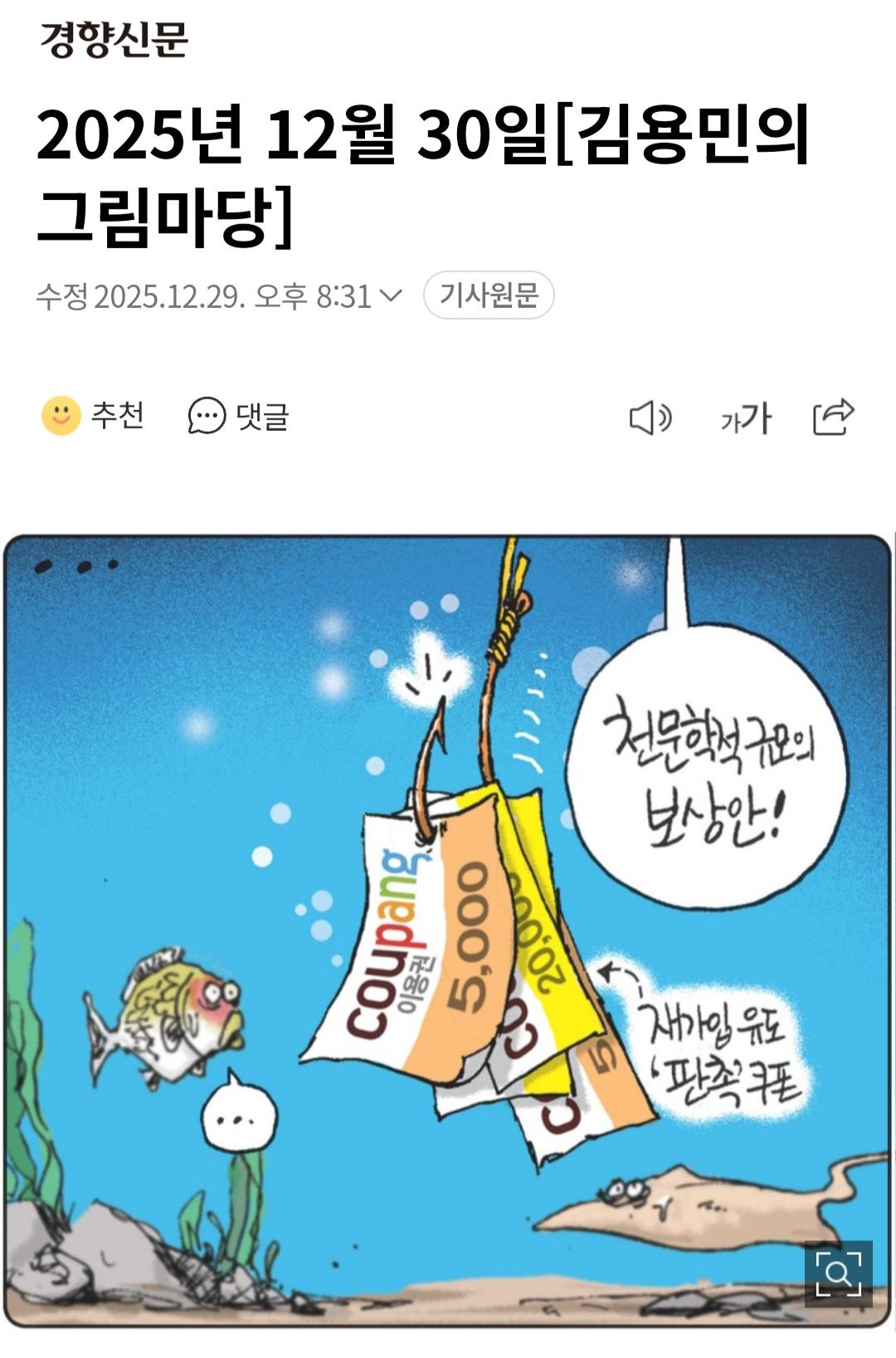 경향 만평 ㅡ 쿠팡, 천문학적 규모의 보상안