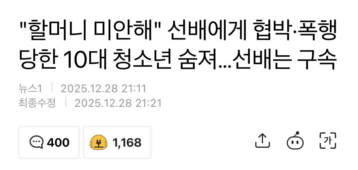 선배에게 협박 폭행당한 10대청소년이 숨진 이유