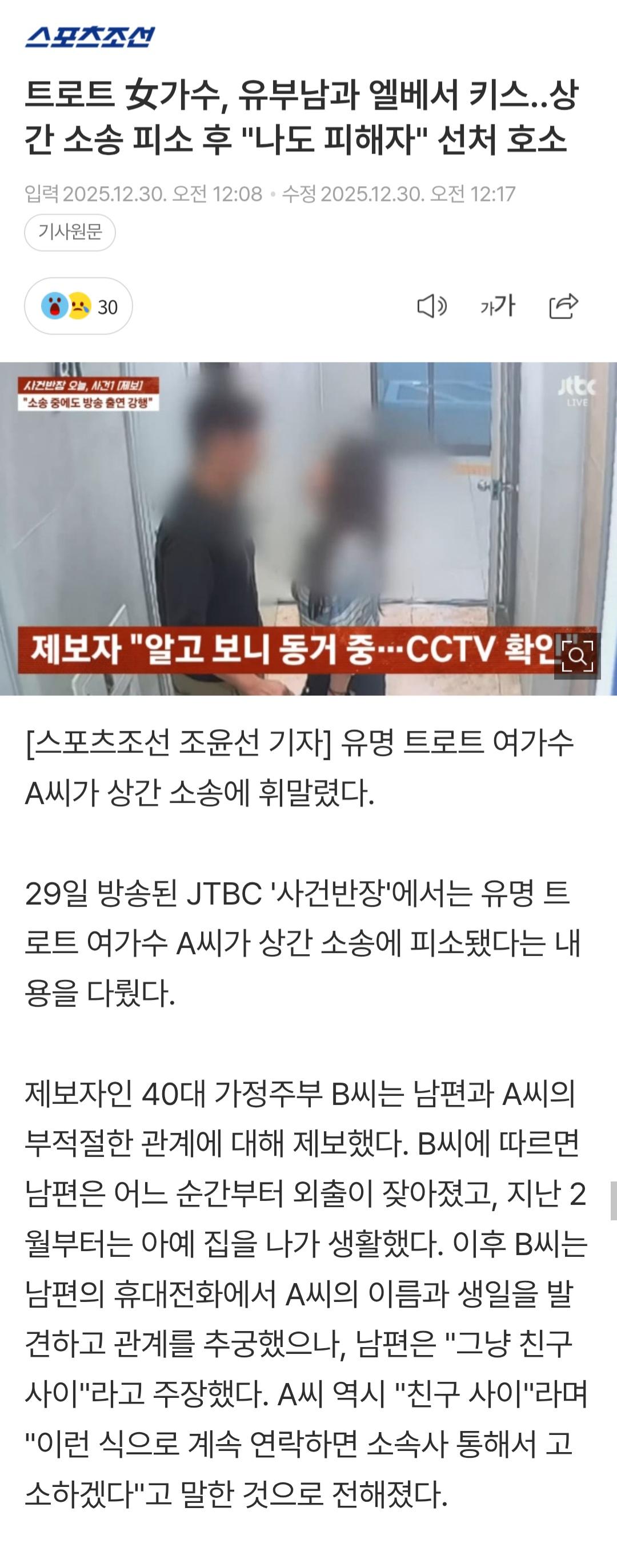 트로트 女가수, 유부남과 엘베서 키스..상간 소송 피소 후 "나도 피해자" 선처 호소
