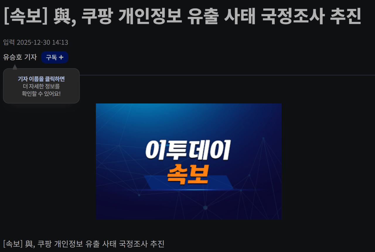 [속보] 與, 쿠팡 개인정보 유출 사태 국정조사 추진 ㄷㄷㄷㄷㄷㄷㄷ