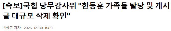 속보)한동훈 가족 명의 동일, 게시글 삭제 시도