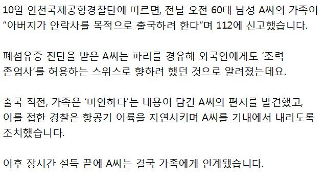 안락사 목적 출국 60대... 경찰, 이륙 직전 제지 ㄷㄷㄷㄷㄷㄷ 신나는곰 0 11 0 0 1시간전 주소복사 복사되었습니다! 본인 의지라는데 왜? vs 가족들이 그 꼴을 그럼 걍 보기만 하라는 말이냐 서로 자기가 맞다고 댓글로 싸우더란 ㄷㄷㄷㄷㄷㄷㄷㄷㄷㄷㄷㄷㄷ 0 0