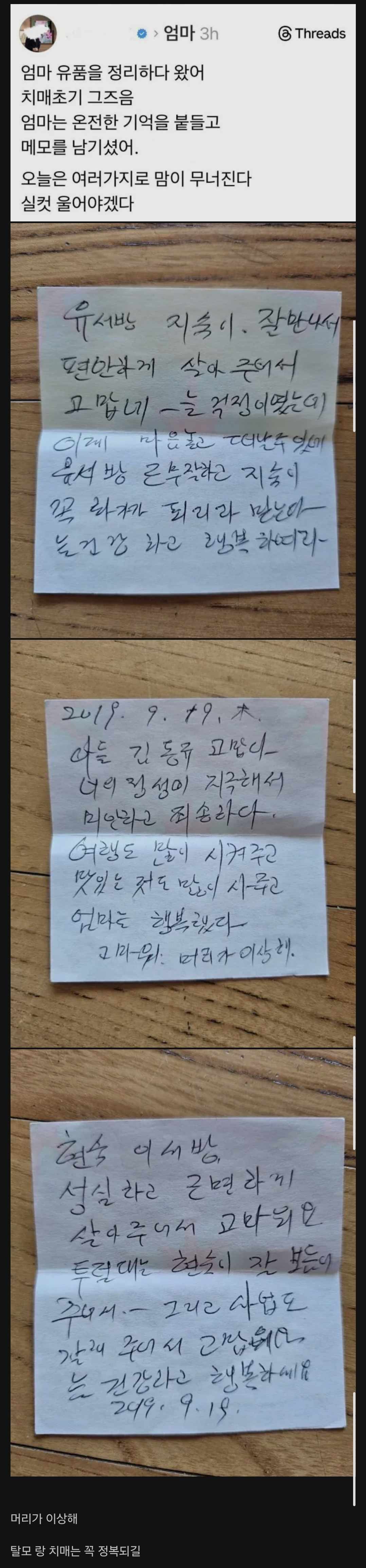 치매 걸린 엄마가 남긴 쪽지 ㄷㄷㄷ