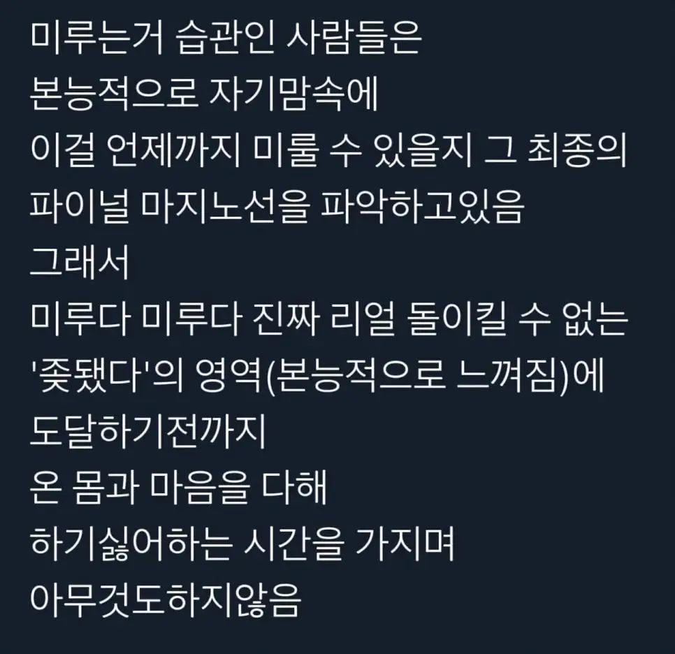 미루는게 습관인 사람 특징