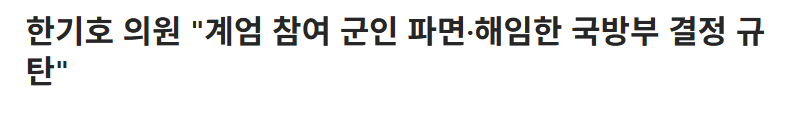 국짐 한기호 의원 "계엄 참여 군인 파면·해임한 국방부 결정 규탄" ㄷㄷㄷ