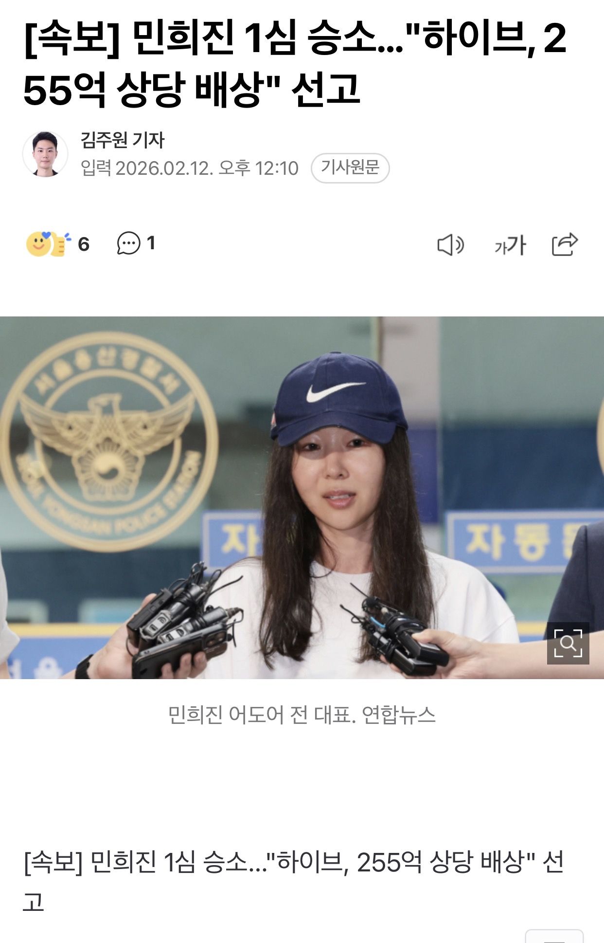 민희진 1심 승소 하이브 255억 배상 ㄷㄷㄷ .jpg