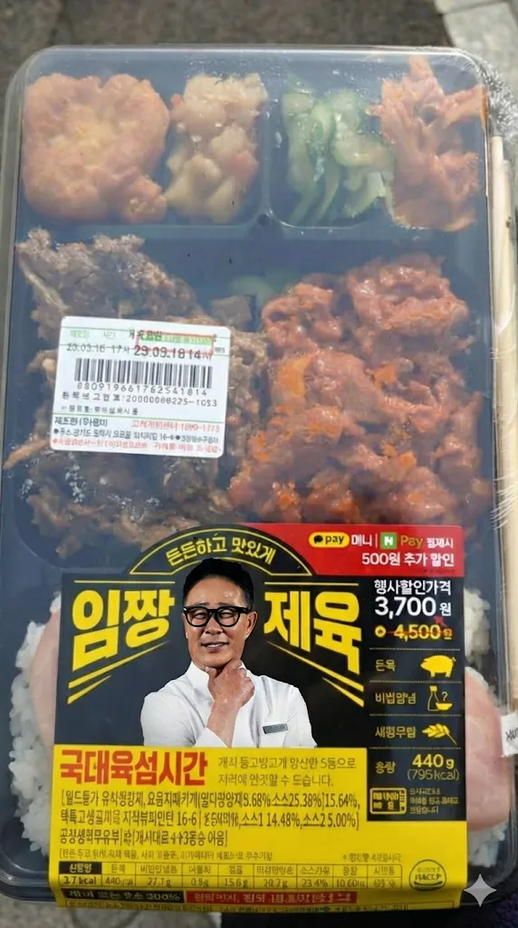 개인적으로 흑백요리사 우승자 보다 궁금한건 quizx 0 2 0 0 1시간전 주소복사 복사되었습니다! 임짱 임성근 아재가 어느 편의점이랑 손잡고 도시락 내놓을지 이 아저씨 요리가 딱 편의점 도시락으로 잘 팔릴거 같은 요리들이던데 곧 임짱 제육도시락, 임짱 갈비도시락 이런거 나올거 같은데 대충 백종원 도시락의 임짱 사진만 가져다 붙였는데 암만 생각해도 손종원 불백, 안성재 돈까스는 어울리지 않는데 임성근 제육, 임성근 불백, 임성근 닭갈비 는 이거 딱이지 않나 싶은 0 0