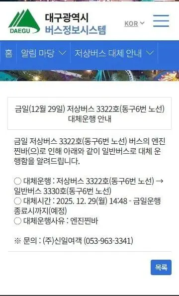 어제자 한 버스의 대체운행 사유