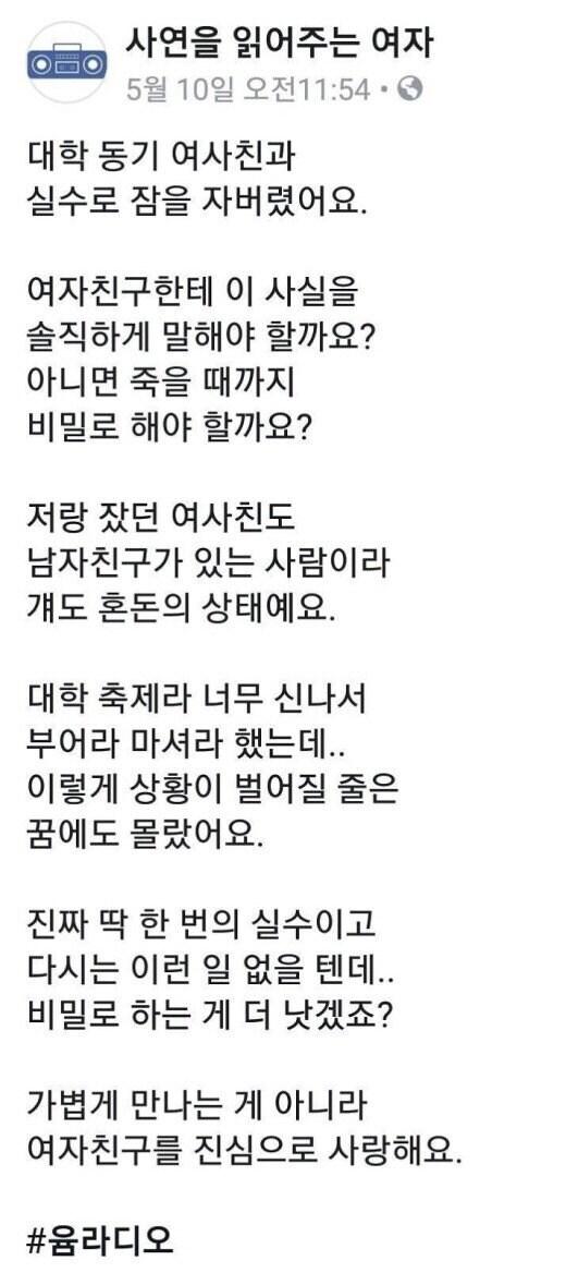 여사친이랑 실수로 ㅅㅅ해서 고민인 남자