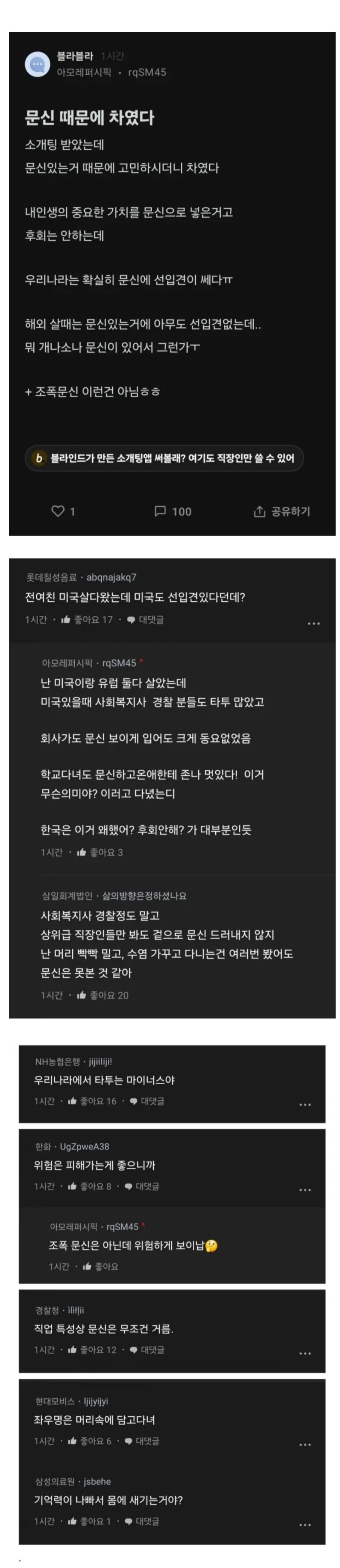 문신 때문에 차였다는 아모레 직원