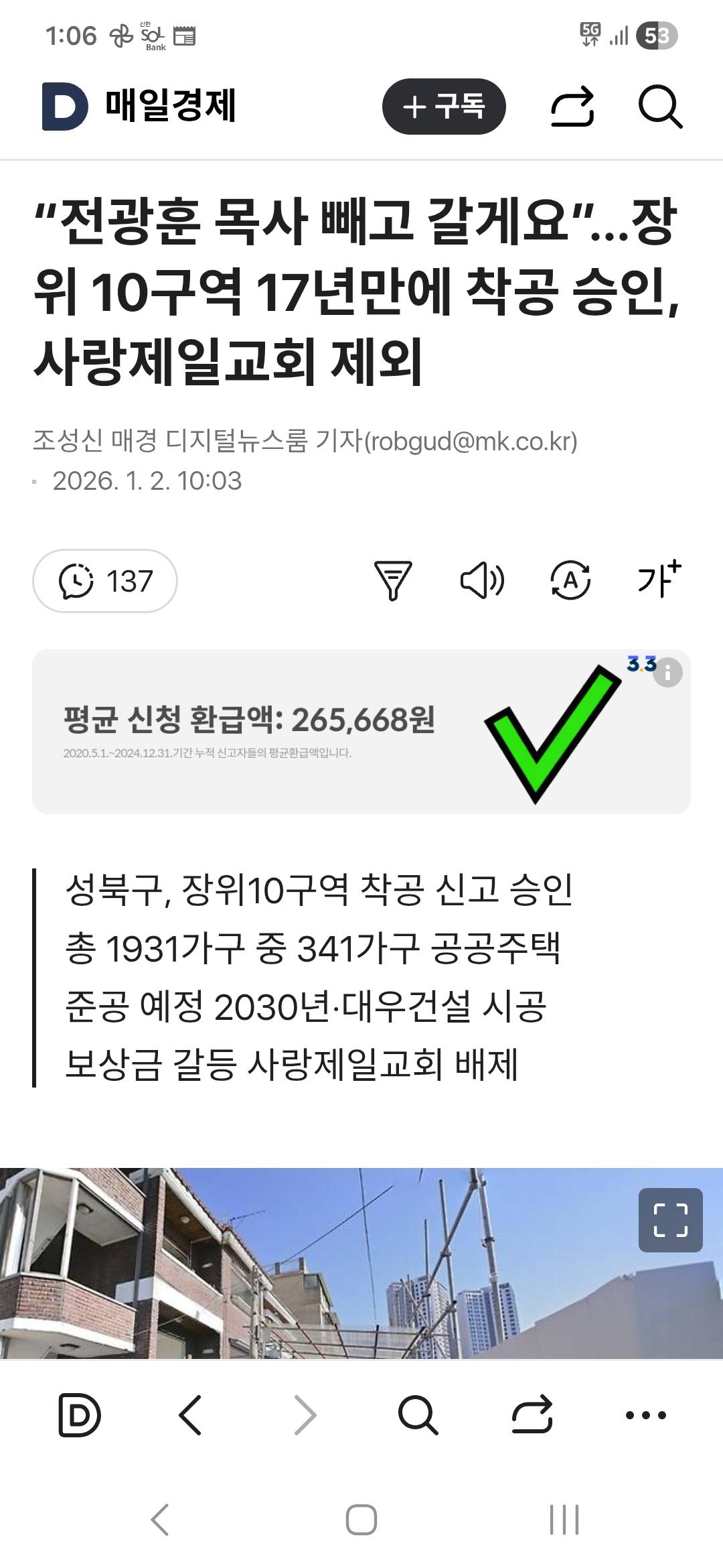 전광훈.. 꼬시네.. ㅋㅋㅋ meta 0 9 0 0 1시간전 주소복사 복사되었습니다! “전광훈 목사 빼고 갈게요”…장위 10구역 17년만에 착공 승인, 사랑제일교회 제외 가스통교회. ㅈ 됏네요 ㅋㅋㅋ 0 0