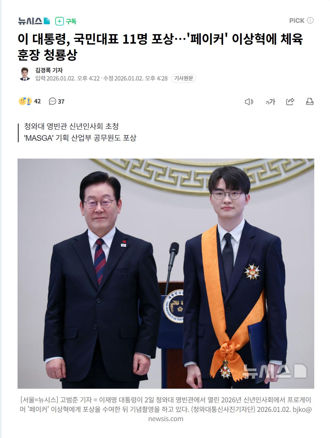 ‘페이커’ 이상혁, 체육훈장 청룡장… e스포츠 최초