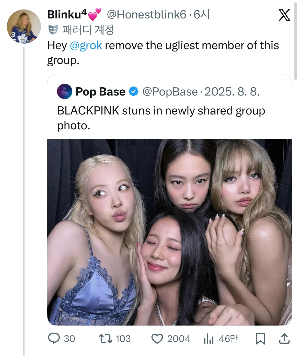 야 그록, 제일 못생긴 블핑 멤버 지워줘