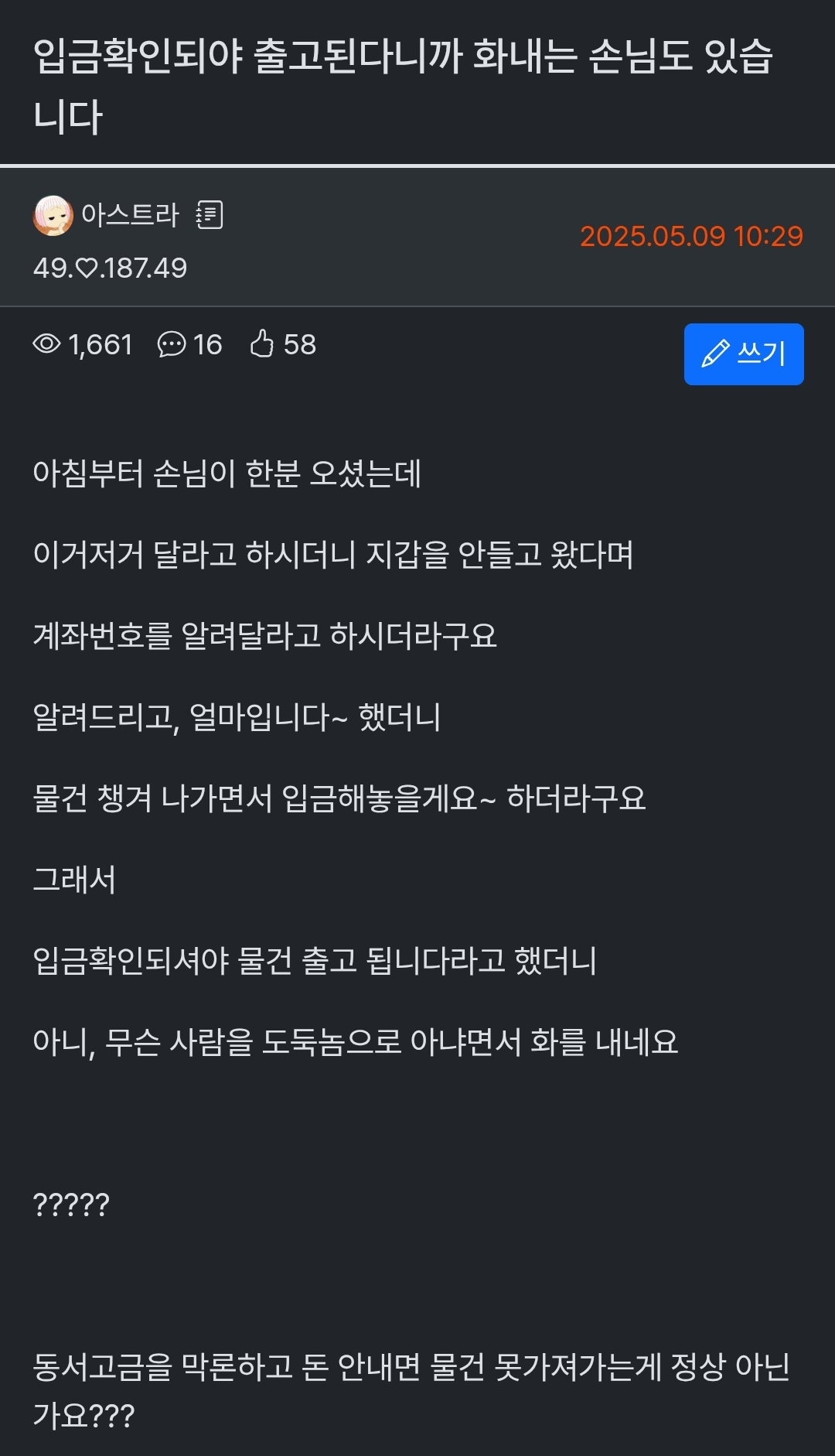 입금을 해야 출고된다니까 화내는 손님