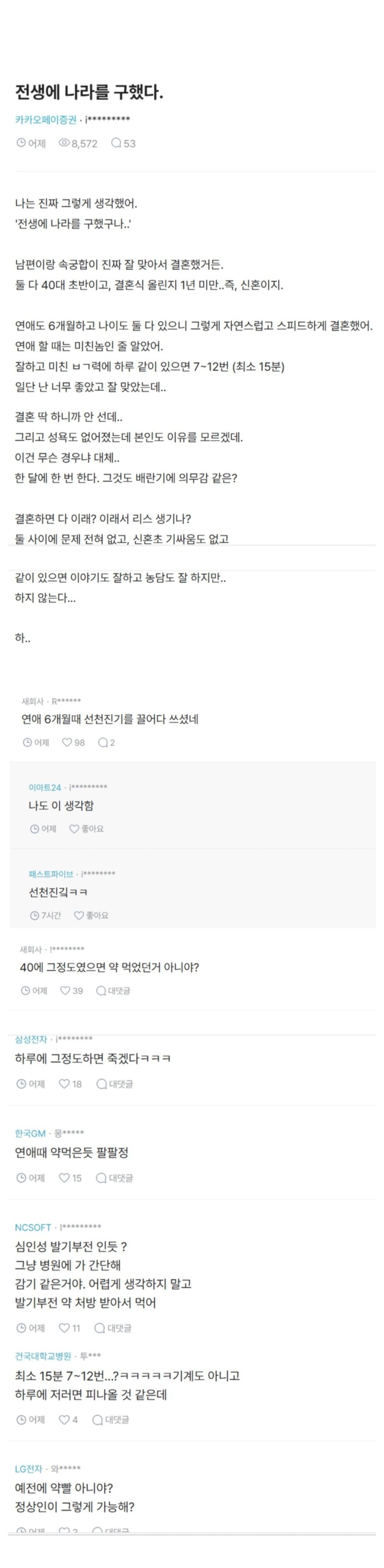 속궁합이 너무 잘맞아서 전생에 나라를 구한줄 알았다는 여자