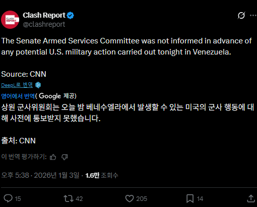 상원 군사위원회, 베네수엘라에서 이루어지는 군사행동에 대해 통...