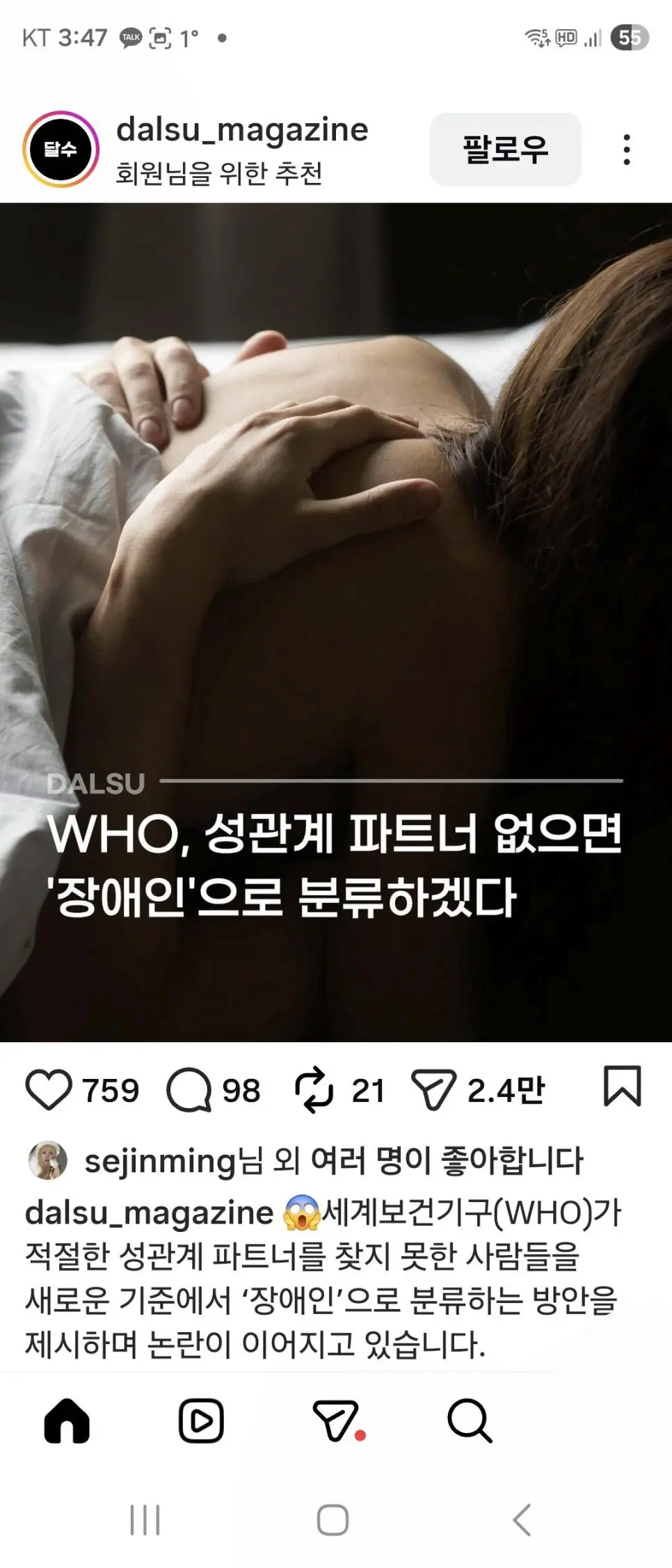 WHO: 성관계 파트너 없으면 장애인으로 분류