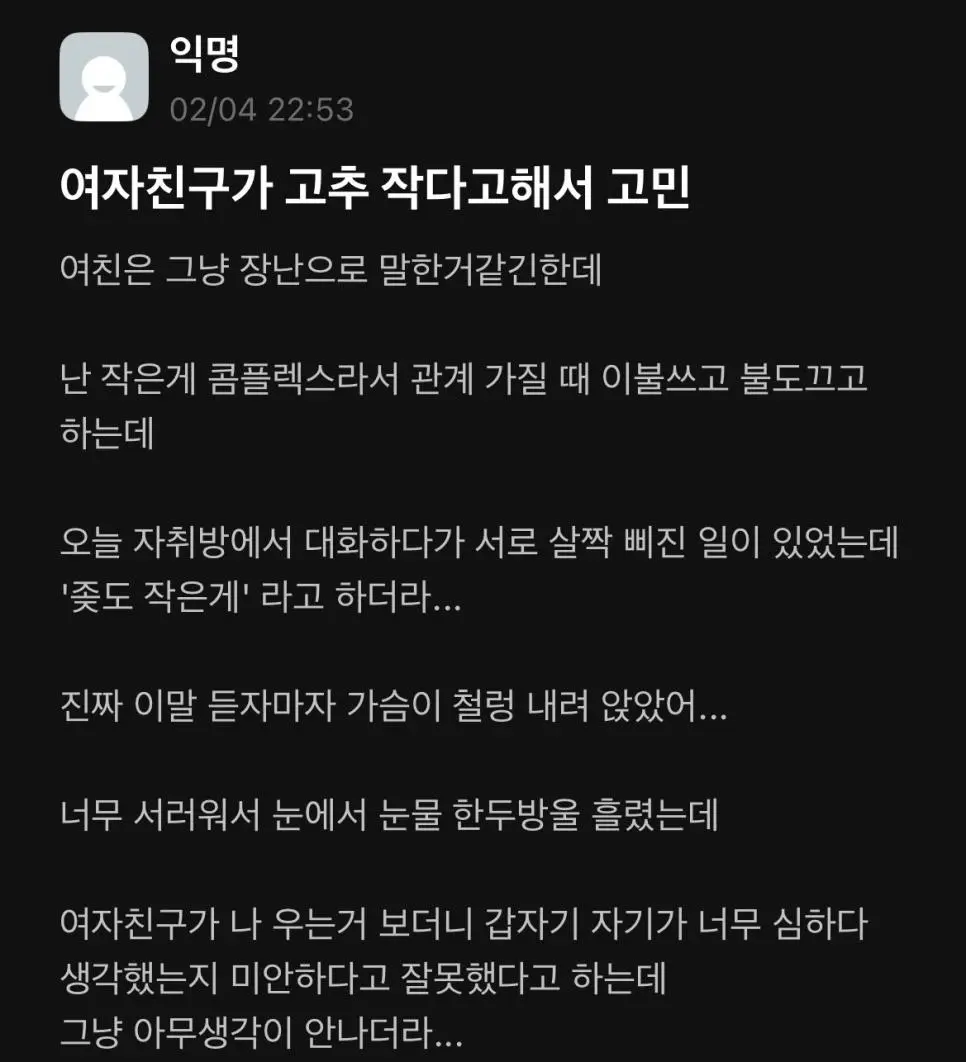 여자친구가 고추 작다고해서 고민인 남자.JPG