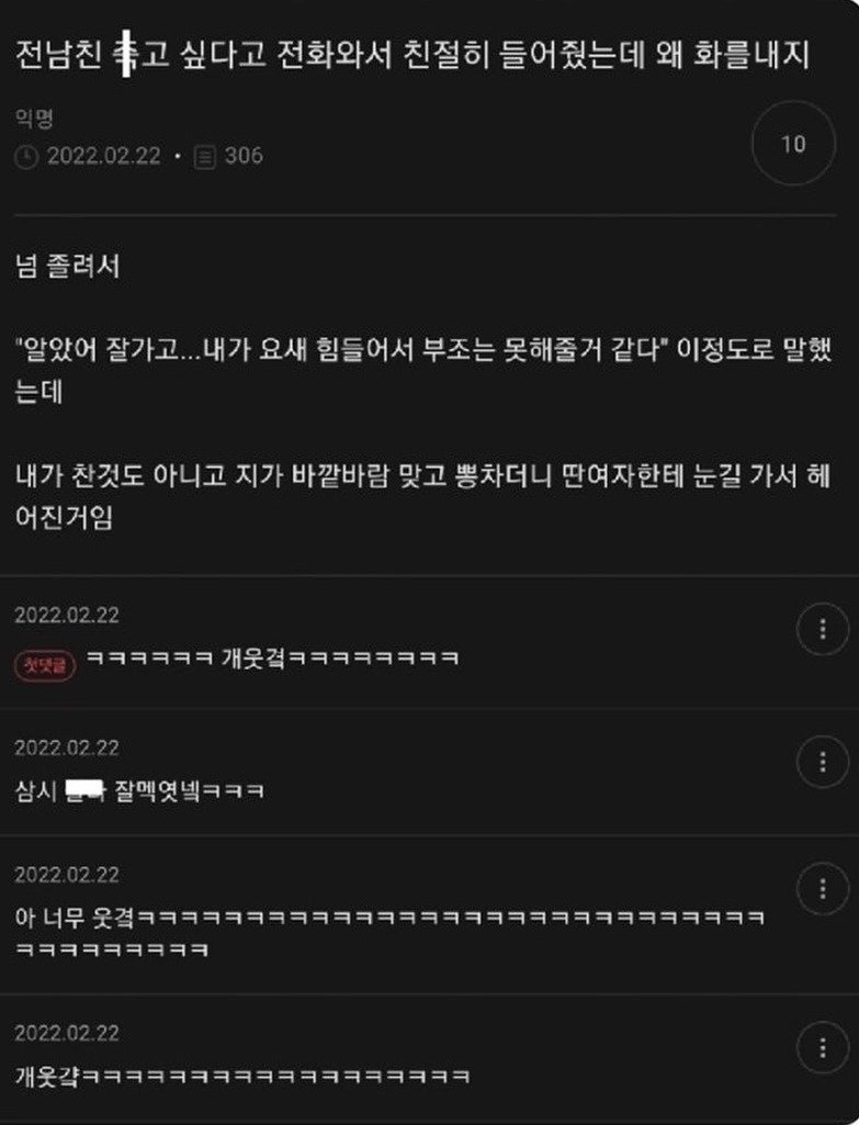 전남친 죽고 싶다고 전화와서 친절히 들어줬는데 왜 화를 내지