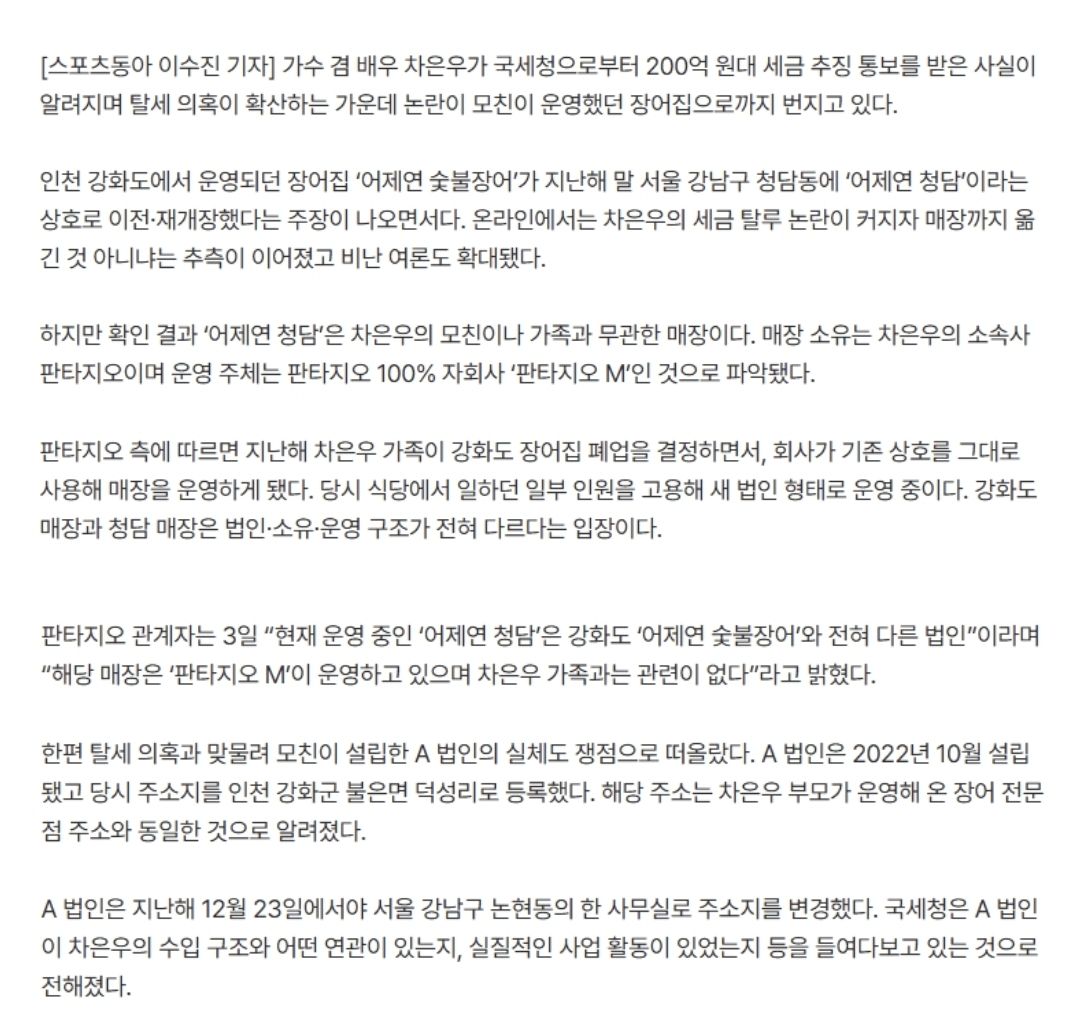 엔터 업계인줄 알았는데 장어집 운영 사업도 하네요 ㄷㄷㄷㄷㄷ