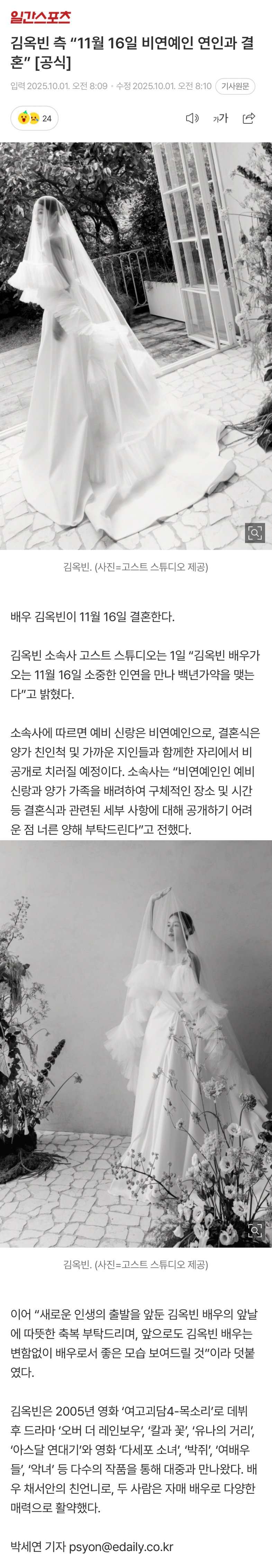김옥빈 측 “11월 16일 비연예인 연인과 결혼” [공식] 아프차크크 0 3 0 0 2시간전 주소복사 복사되었습니다! https://naver.me/x9ztHHz6 https://naver.me/x9ztHHz6 0 0